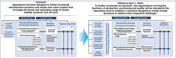 TOKIO, Japón, 25 de enero de 2024 – Honda Motor Co., Ltd. anunció que realizará cambios organizativos y operativos a partir del 1 de abril de 2024, mientras continúa trabajando para cumplir su visión de servir a personas de todo el mundo con la “alegría de ampliar el potencial de su vida” en los ámbitos…