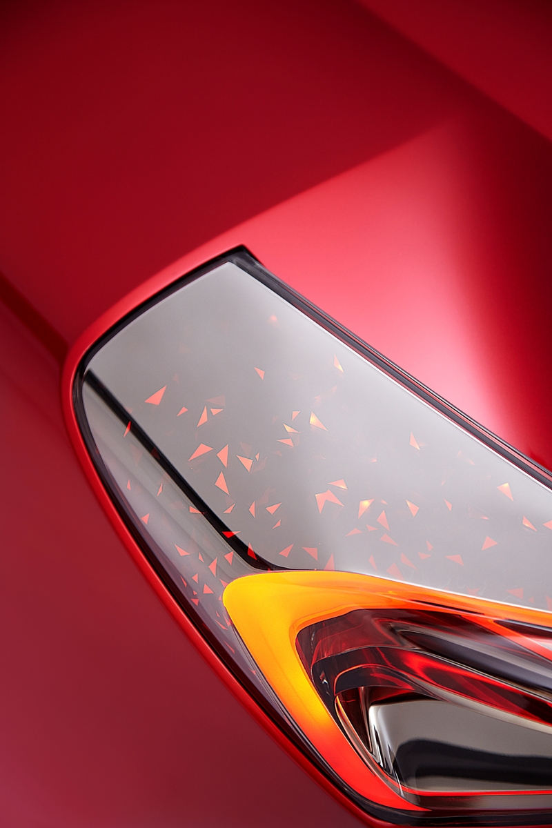 Un elemento clave en el diseño, llamado “Quantum Continuum”, se ve en la transición de materiales desde el exterior hacia el interior del vehículo, el cual se destaca aún más por la ausencia de un pilar “B”. A su vez los paneles de las puertas fluyen hacia el interior conforme bajamos la mirada creando una especie de voladizo para los asientos traseros. A su vez, la luz de freno central colocada en la parte alta del medallón se convierte en un elemento clave que esculpe gran parte de la parte trasera del vehículo.