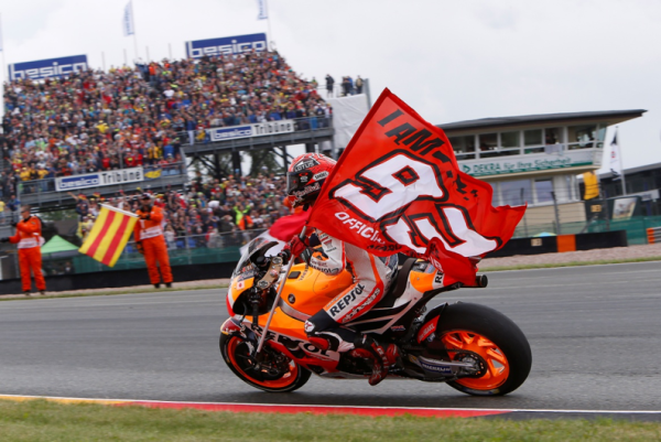 Tras una concienzuda carrera, el español del equipo Repsol Honda RC213V se adjudicó su séptima victoria consecutiva en Alemania, aumentando así su ventaja en la tabla de puntuación.