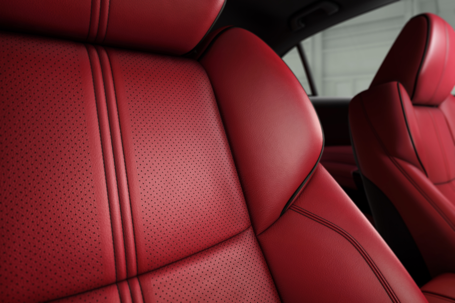En su interior nos encontramos con asientos frontales prominentes, con costuras y laterales de alto contraste; laterales de iluminación ambiente LED en color rojo; detalles de velocímetro en rojo; tapicería en techo y laterales en color negro; panel de instrumentos con detalles de aluminio satinado; y un volante exclusivo con borde grueso e insignia A-Spec.