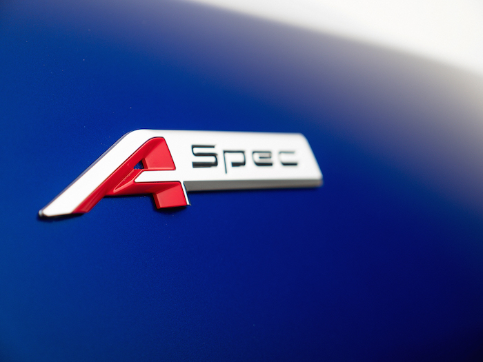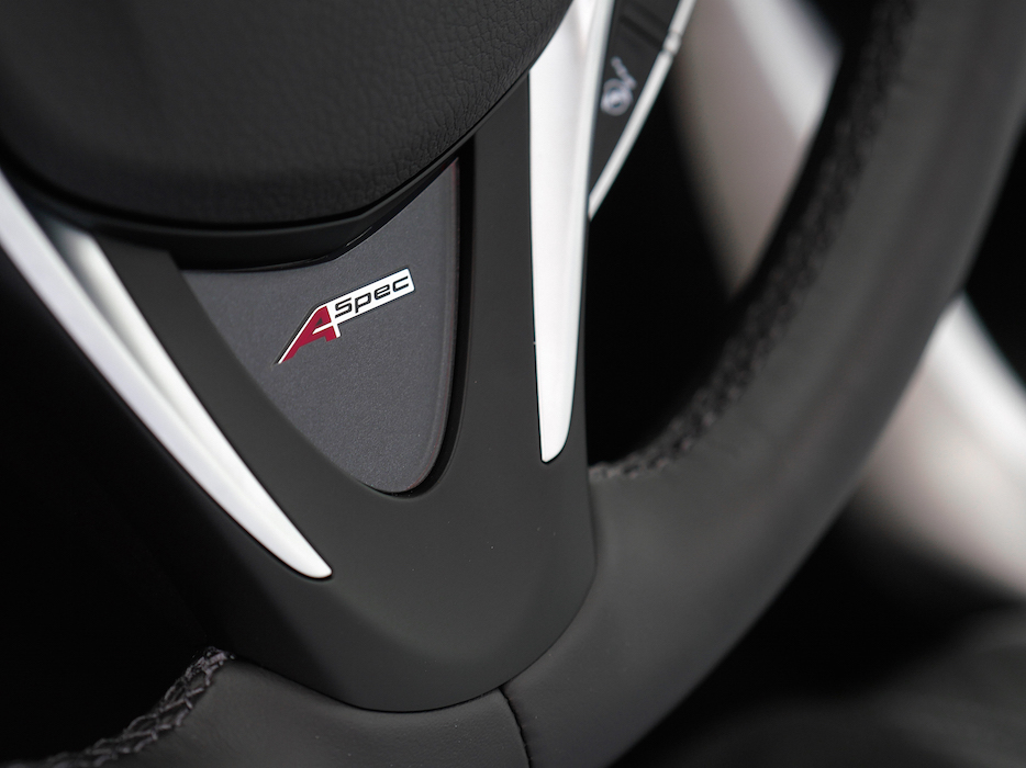 La versión A-Spec sorprenderá con su diseño imponente y deportivo, donde destacan sus detalles exteriores en negro y rines exclusivos de 19 pulgadas que tienen un acabado en color “Shark Grey” y llantas de serie 245/40. En la parte frontal está la parrilla en forma de diamante en pentágono negro mate con borde cromado negro, una fascia inferior delantera agresiva, con apertura central y faros de niebla LED a los costados, y los faros LED Jewel Eye. Las mejoras exteriores de la versión A-Spec continúan en la parte trasera, con un alerón negro brillante, luces traseras LED “ahumadas” y una fascia exclusiva con un difusor inferior acentuado con salidas de escape duales y redondas de 4 pulgadas. Su diseño es completado por bordes negro mate en las ventanas laterales y la insignia A-Spec en la defensa frontal y la cajuela.