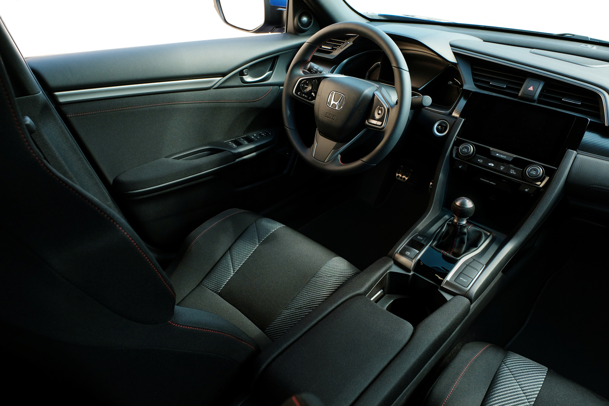 Dentro del Civic Si se cuenta con asientos delanteros deportivos reforzados, con costuras en rojo que también se tienen en las puertas, forro en piel de volante y palanca de cambios, así como logos “Si” bordados en los respaldos. El color rojo del interior se lleva también a los instrumentos del conductor, así como la iluminación del sistema de audio. Para terminar, tiene pedales deportivos de aluminio y acabado del panel de instrumentos tipo fibra de carbono, dándole al Si su apariencia interior única.