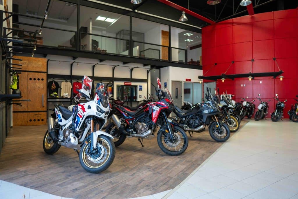 - Área dedicada a accesorios y equipamiento para modelos emblemáticos como Africa Twin y Rebel.
