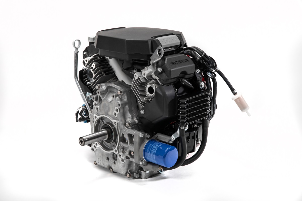 Los nuevos motores Honda V-Twin, disponibles en configuraciones de eje tanto horizontales como verticales, comparten la misma huella que los modelos existentes. El gobernador electrónico permite al motor regular la potencia cuando cambia la carga para las aplicaciones comerciales demandantes, incluyendo equipo de concreto y construcción (reglas eléctricas, unidades de potencia hidráulica, sierras para concreto, paletas de concreto para montar, rodillos vibratorios, generadores y lavadoras de presión) y equipo comercial para césped (podadoras sin giro, tractores de podado, tractores de jardín, vehículos utilitarios, zanjadoras, trituradoras de tocones y astilladoras/trituradoras).