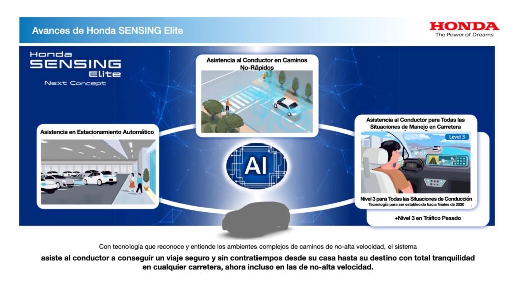 Honda ha estado mejorando las funciones de Honda SENSING y, en 2021, se lanzó ya Honda SENSING Elite con la nueva función Traffic Jam Pilot (Piloto de Tráfico Pesado), que califica ya como una tecnología de conducción automatizada de nivel 3.
