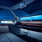 El mismo terminado en madera envuelve la grande consola flotante del tablero, esta da cabida a la columna del volante, un conjunto simple de botones de controles y una pantalla panorámica. El propio tablero se completa por la pantalla envolvente que va de atrás de la consola y se extiende hasta las puertas. La pantalla principal del tablero presenta un amplio rango de información del vehículo incluyendo el nivel de carga de la batería, mientras que las pantallas extendidas hacia las puertas hacen la función de espejos laterales a través de cámaras digitales.