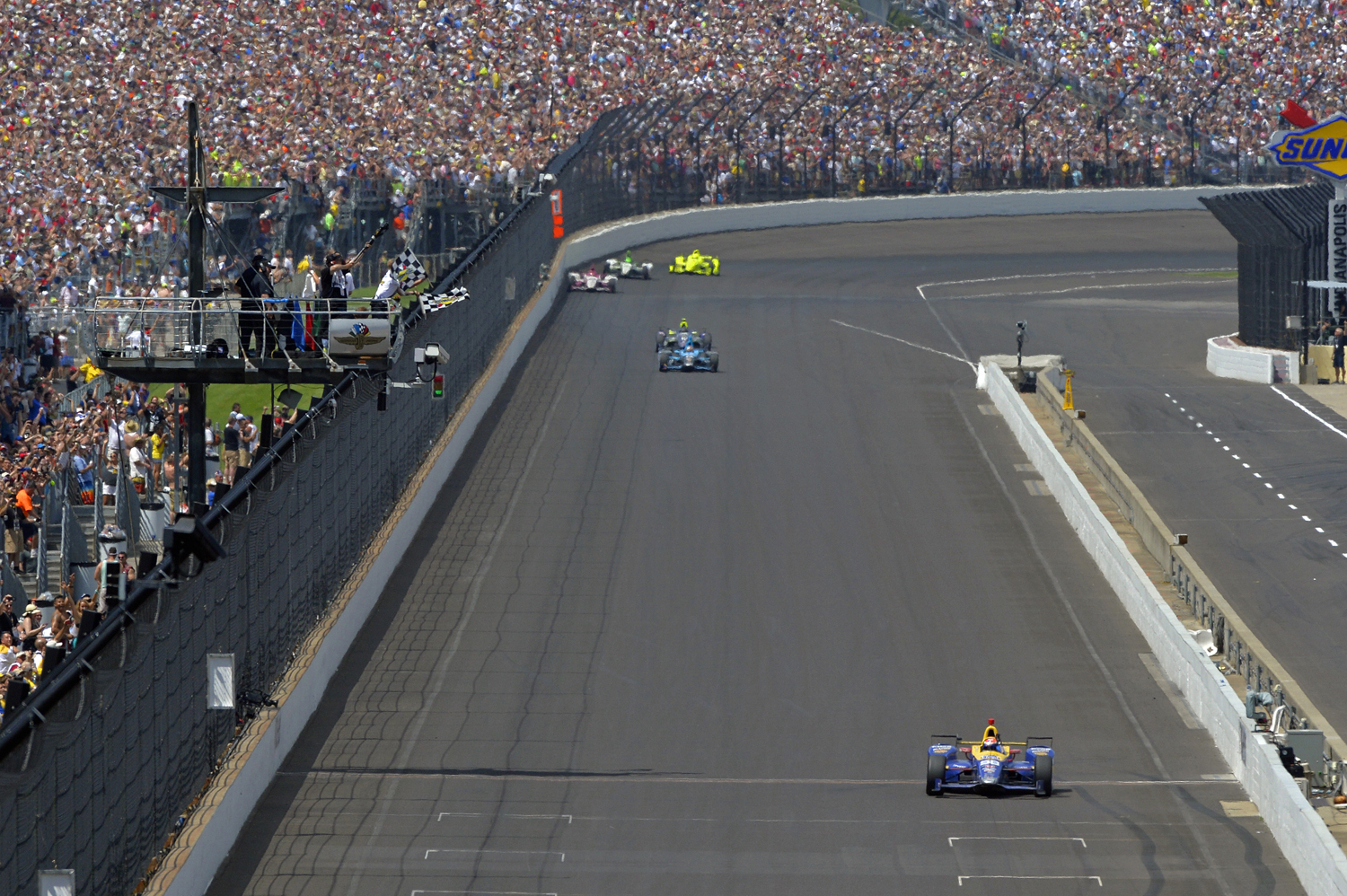 De esta manera el norteamericano Alexander Rossi se convirtió en el noveno debutante en Indianápolis en ganar la afamada carrera; y el primero en lograrlo en los últimos 16 años después de que el brasileño Helio Castroneves lo lograra en el 2001.