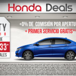 Obteniendo el financiamiento del auto a través de Honda Finance, durante este mes no se cobra la comisión por apertura y el primer servicio de mantenimiento es sin costo para el propietario. Los planes son con un enganche desde 10 y hasta 50%, a plazos que van desde 12 hasta 72 meses con tasas de interés a partir de 10.99%, y durante mayo la comisión por apertura es de $0.00 pesos. El primer servicio sin costo es válido en los concesionarios Honda autorizados, El crédito es exclusivo con Honda Finance, no incluye accesorios ni aplica con otras promociones.