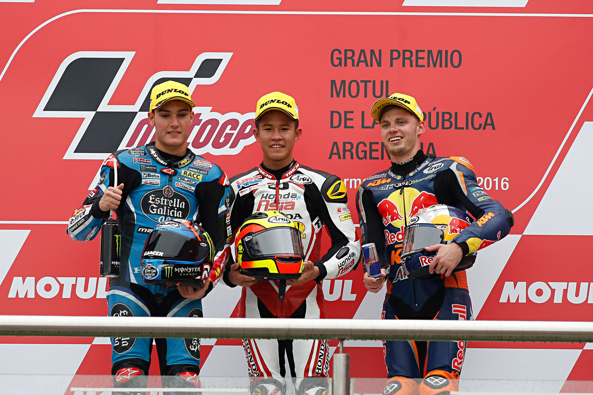 Otro logro para Honda durante este fin de semana fue la histórica victoria dentro de la categoría Moto3 gracias a la excelente actuación de Khairul Idham Pawi (Honda Team Asia NSF250RW), quien se convirtió en el primer piloto malayo en ganar una carrera en dicho serial. Pawi es el talento más reciente proveniente del semillero surasiático y se ha unido a Honda para hacer su carrera profesional con la marca del ala dorada.