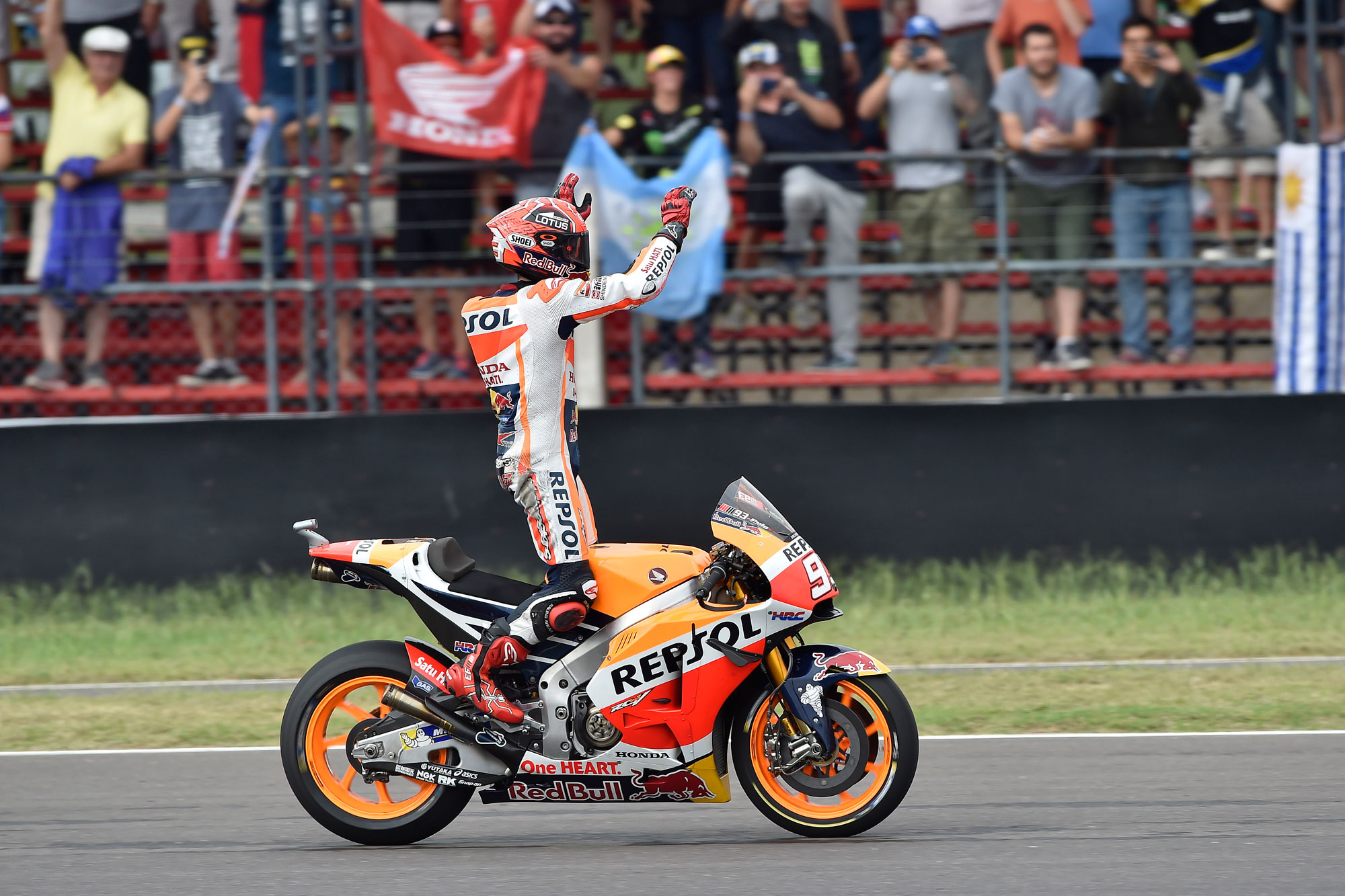 México D.F. (4 de abril del 2016) Marc Márquez (Repsol Honda RC213V) manejó de manera magistral dentro del circuito Termas del Rio Honda para adjudicarse su primera victoria del 2016 y de paso colocarse en el liderato del campeonato 2016.