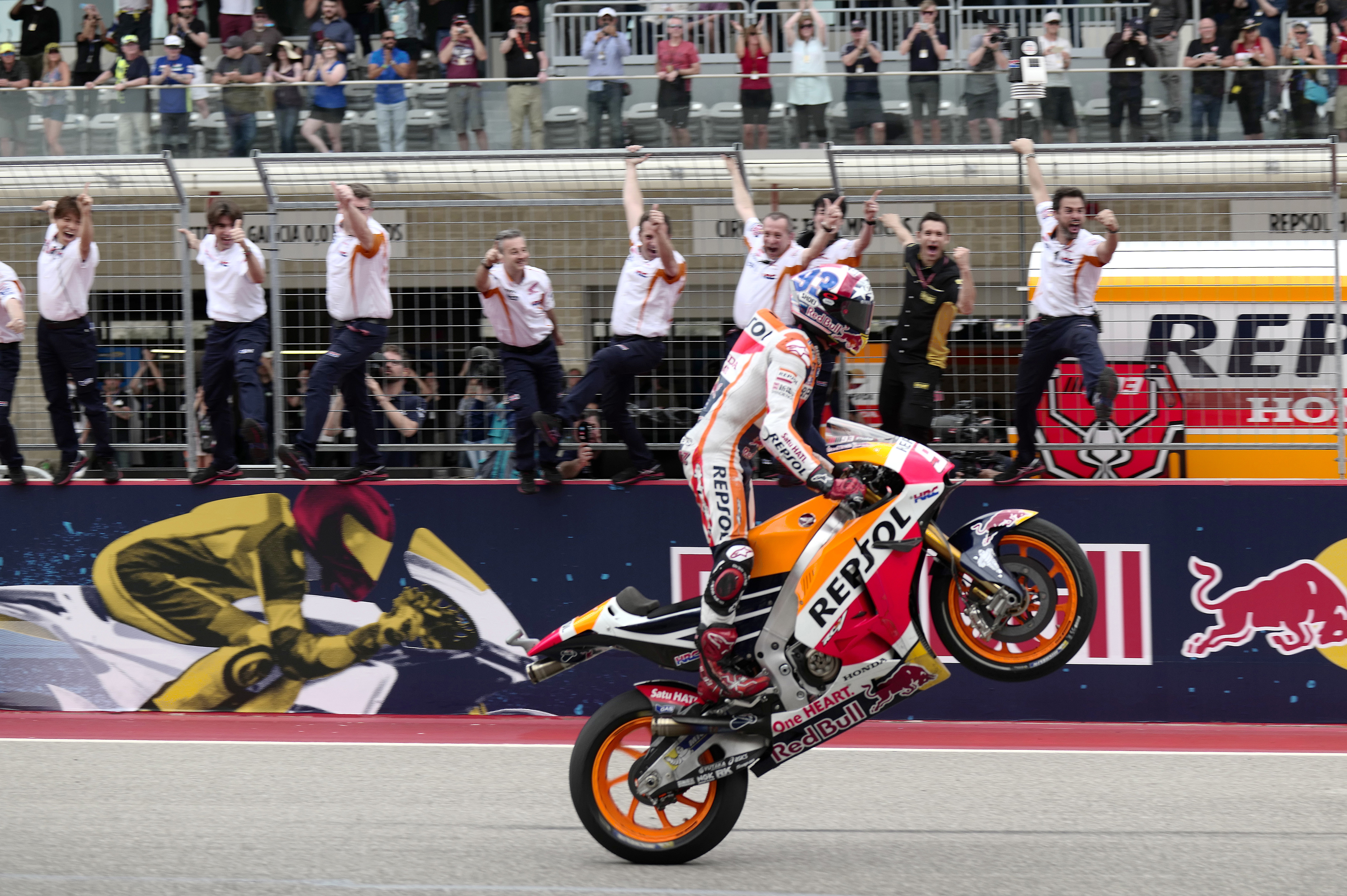 México D.F. (11 de abril del 2016) Marc Márquez del equipo Repsol Honda Team RC213V se adjudicó una gran victoria el pasado fin de semana dentro del Circuito de las Américas, asegurándose así su décima victoria consecutiva dentro de territorio norteamericano y aumentando su ventaja en el campeonato mundial MotoGP 2016.