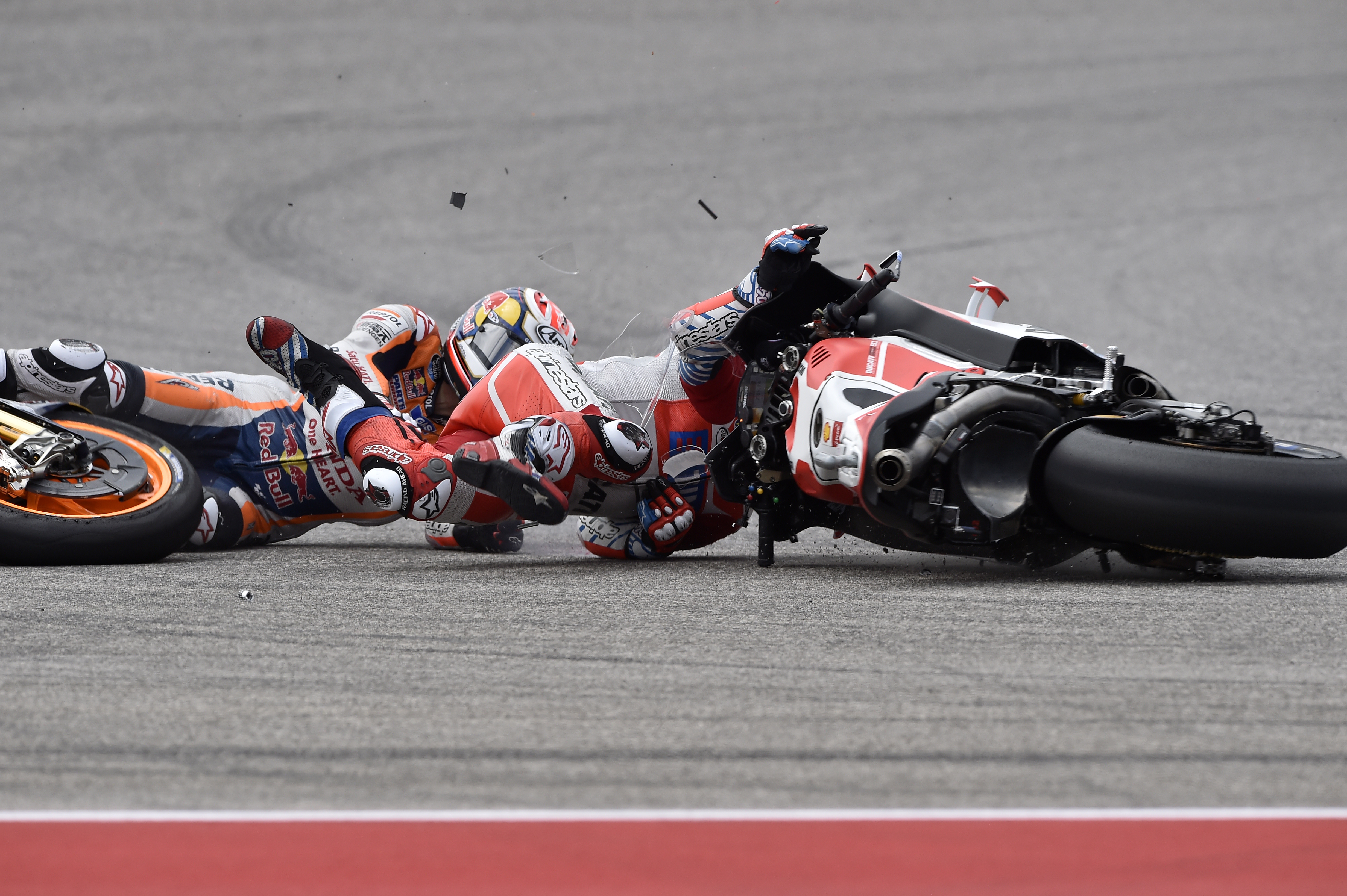 Desafortunadamente no todo fue miel sobre hojuelas para el equipo Repsol Honda Team RC213V, puesto que mientras que Márquez terminaba el fin de semana celebrando en lo más alto del podio, su compañero de equipo sufrió de un desafortunado abandono a la altura de la vuelta siete cuando se encontraba luchando por el tercer sitio general.
