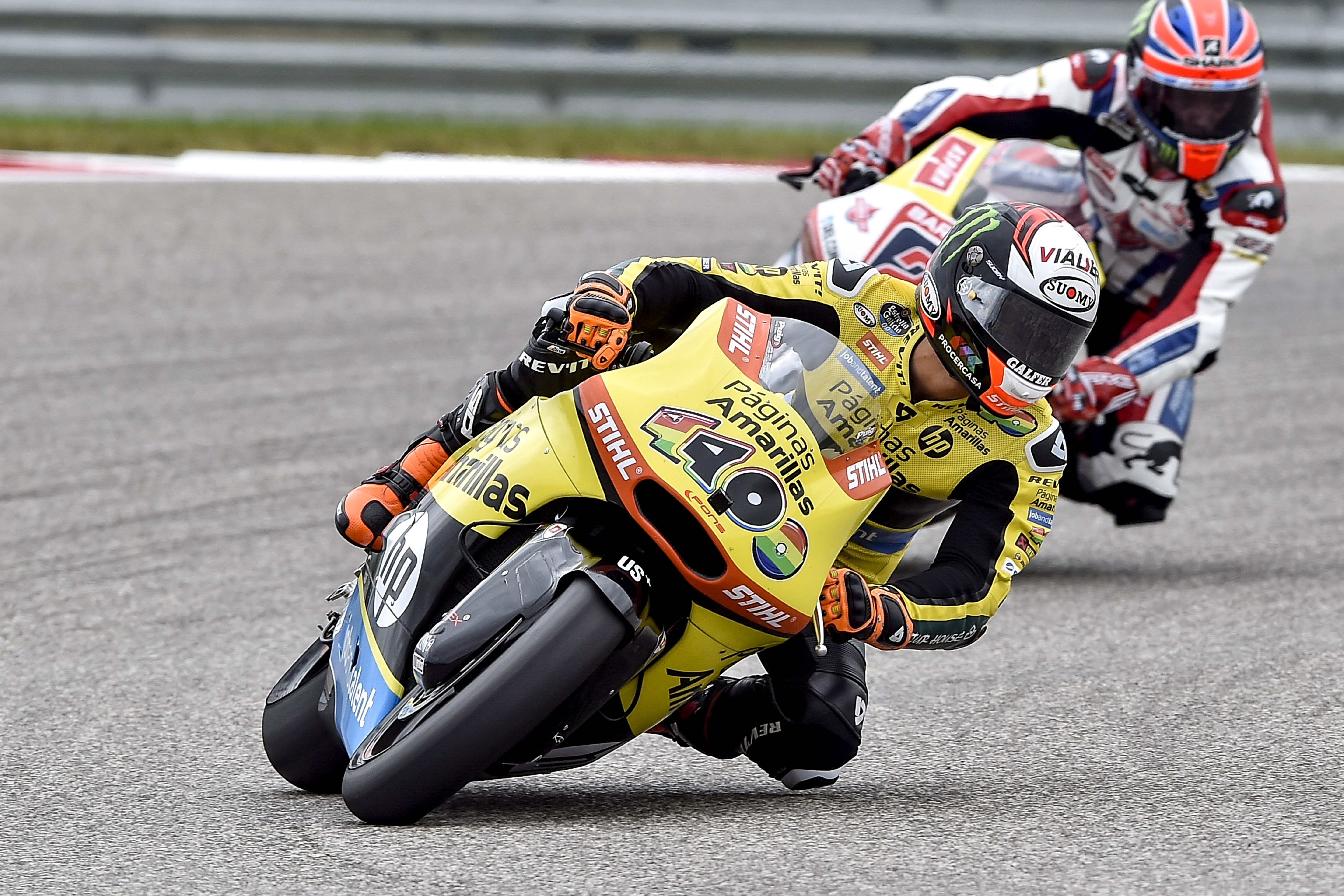 En cuanto a la categoría Moto2, el piloto Alex Rins (Páginas Amarillas HP 40 Kalex) se adjudicó la victoria, tomando el control de la competencia justo después de la segunda curva y aguantando los feroces embates del ganador del año pasado Sam Lowes quien marcó un nuevo record de vuelta durante su participación.