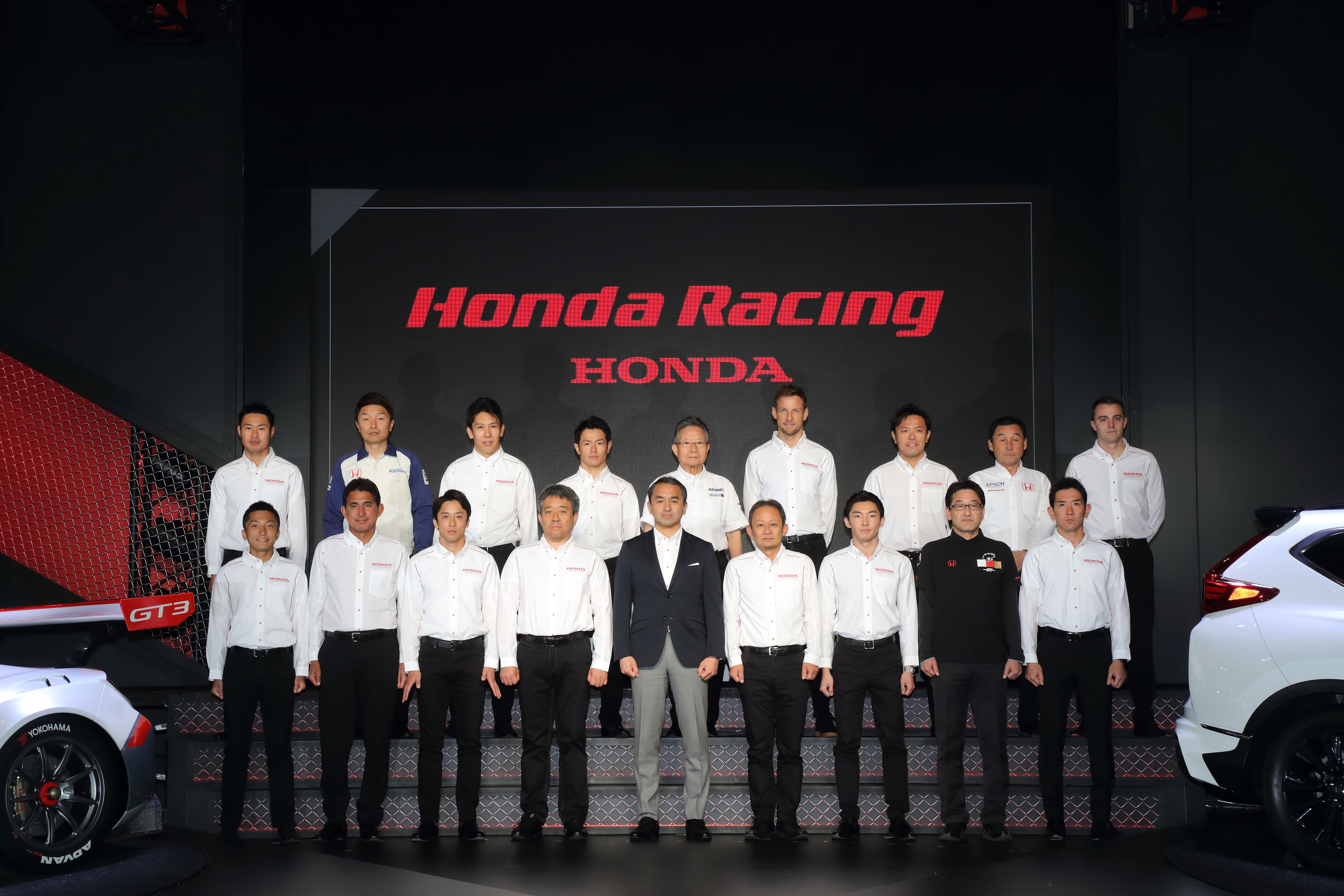 En la clase GT500 de SUPER GT, como el año pasado, Honda competirá con cinco equipos/cinco máquinas. Honda competirá por los títulos madurando más el NSX-GT que fue introducido en 2017. Además, Jenson Button, quien hizo su debut en SUPER GT en los 1000 m de Suzuka el año pasado, será el primer campeón de F1 en competir por una temporada completa en SUPER GT.