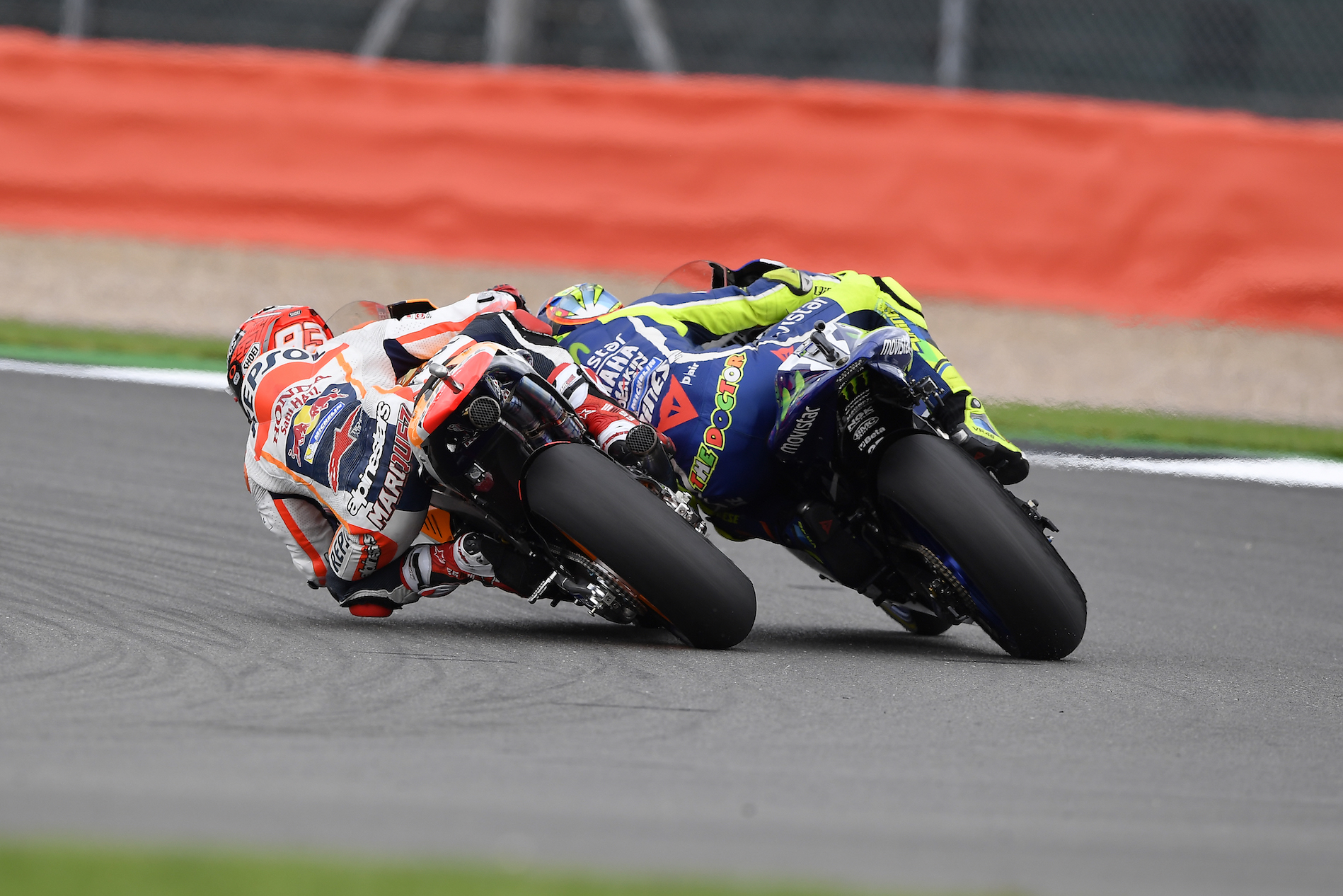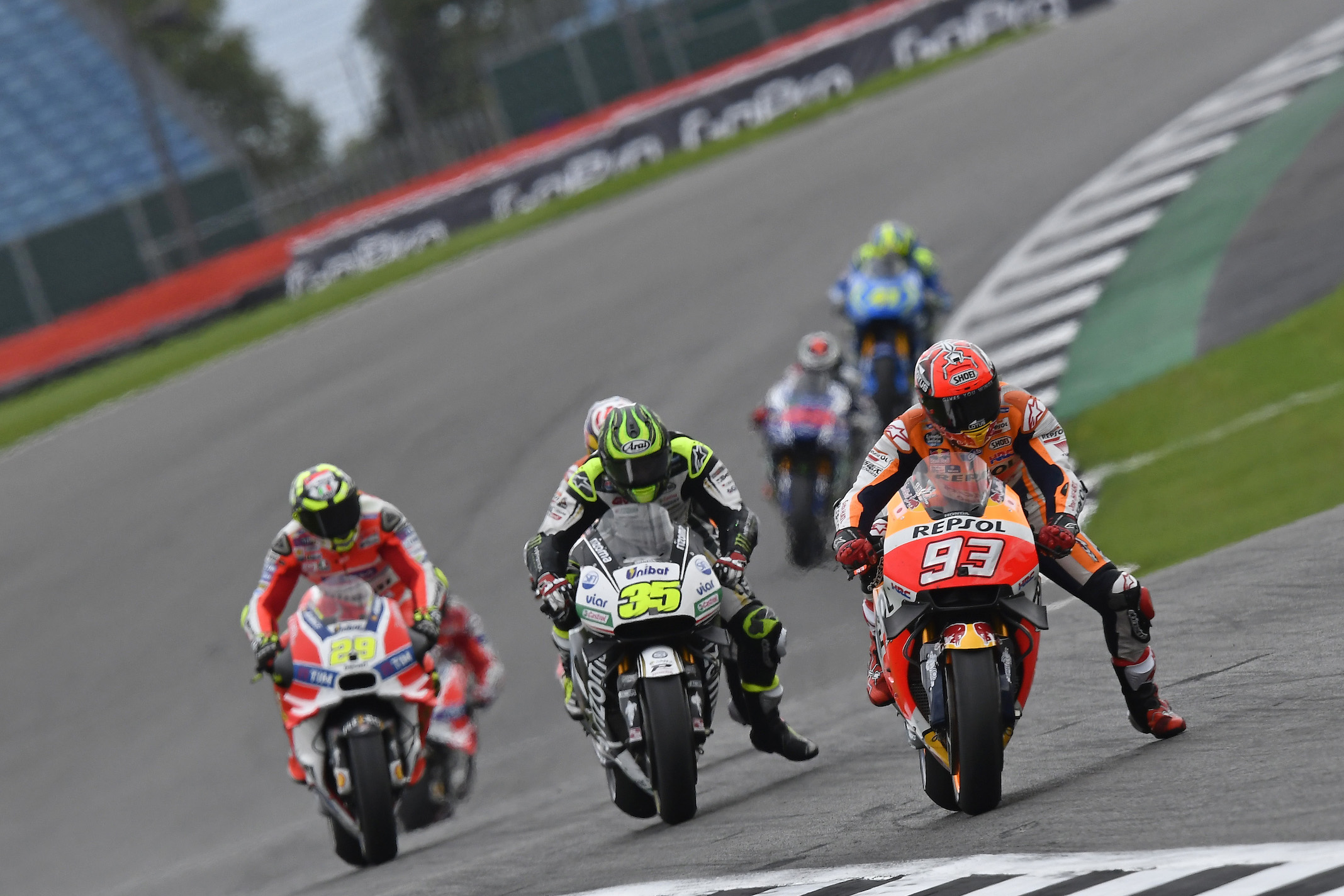 Durante la sesión de calificación la presencia de la lluvia afectó al español Marc Márquez quien en su intento por conseguir la pole position derrapó en la curva Copse y se quedó sin posibilidades de arrebatarle la primera fila al británico Cal Crutchlow, quien ganó la carrera pasada en Brno.